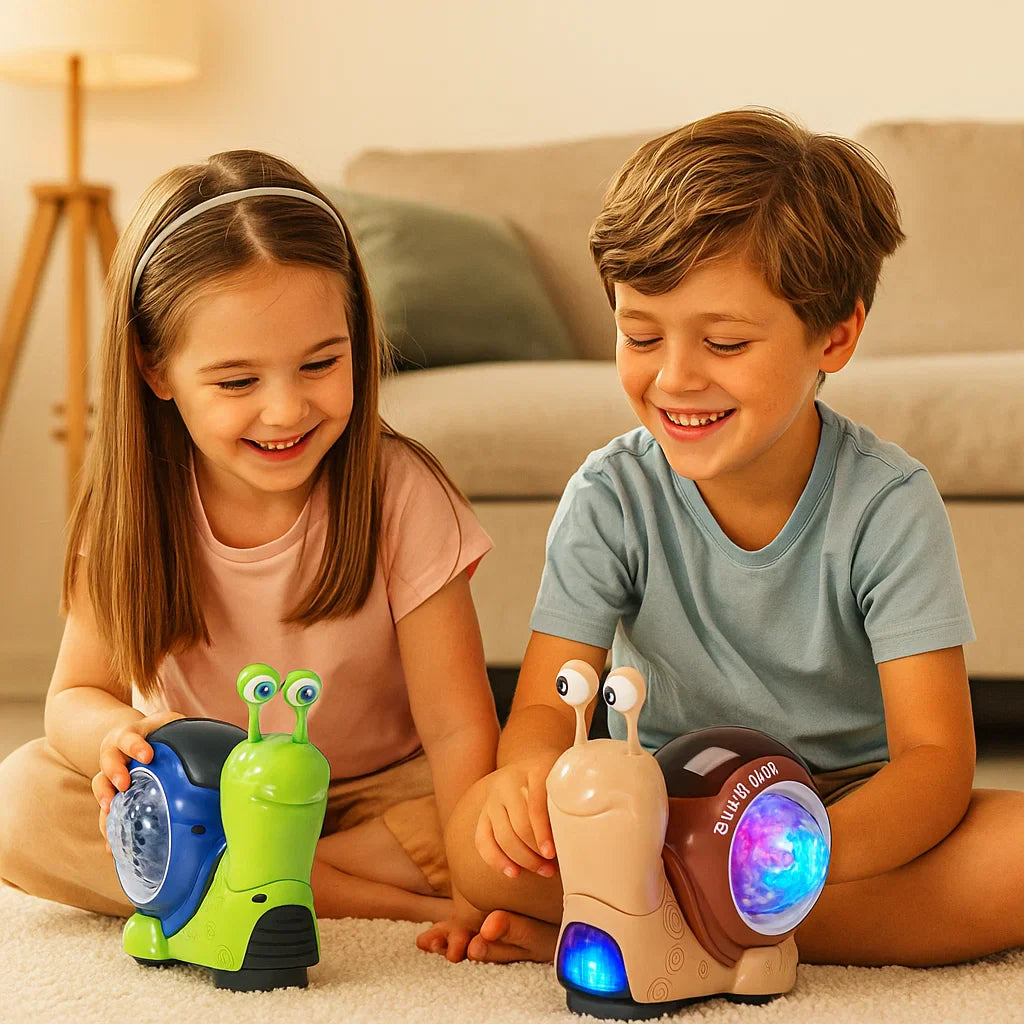 - 💡 Efectos de luz para estimular la vista – Las luces suaves acompañan el movimiento del caracol, apoyando el desarrollo de la percepción visual.