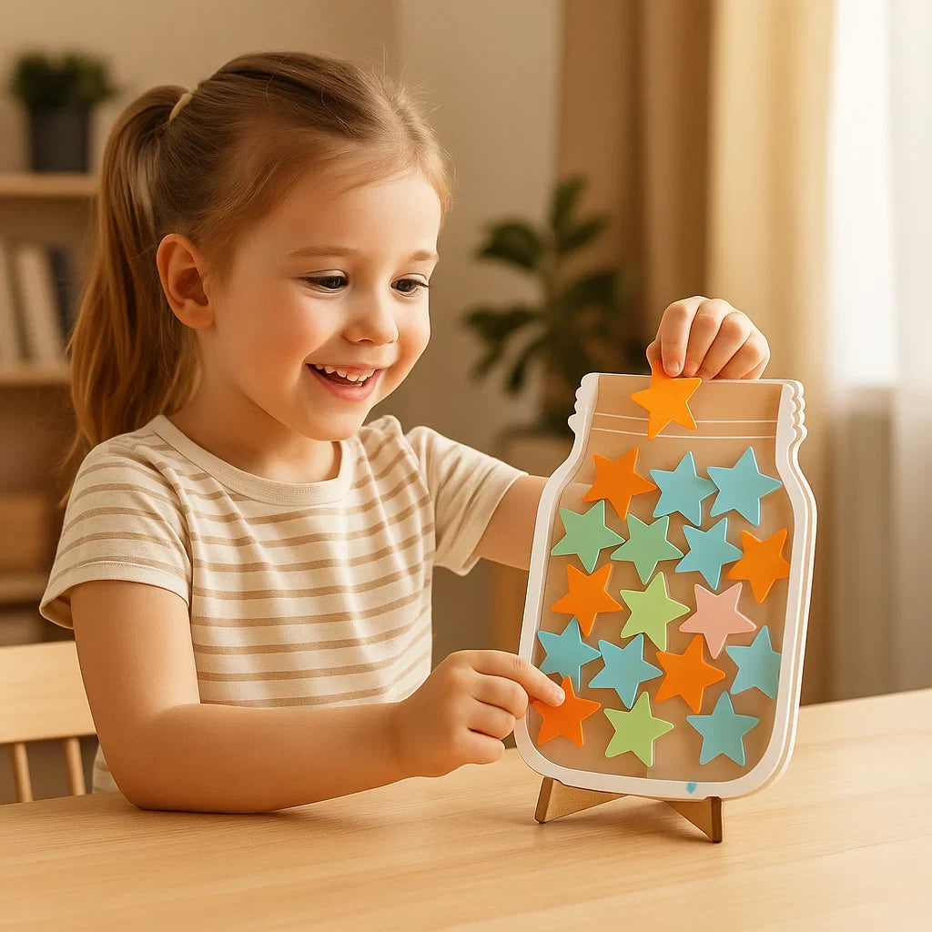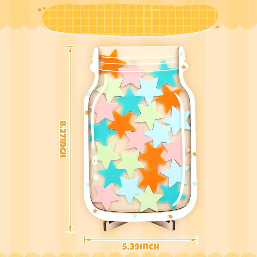 Ayuda a tu hijo a construir confianza en sí mismo, responsabilidad y amor por el aprendizaje con el tarro de estrellas para niños. Diseñado como una herramienta motivacional colorida e interactiva, este tarro lleno de estrellas hace que el refuerzo positivo sea divertido, visual y profundamente satisfactorio. Ya sea para completar tareas del hogar, mostrar amabilidad o concentrarse en las tareas escolares, cada estrella ganada se convierte en un símbolo orgulloso del progreso - y un gran paso hacia mejores hábitos.