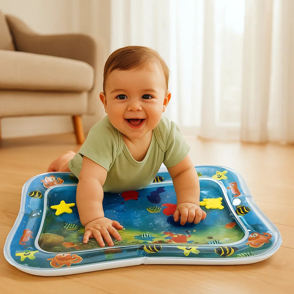 El tiempo boca abajo (tiempo en el vientre) ayuda a los bebés a fortalecer los músculos del cuello, los brazos y las manos, un paso esencial antes de gatear, sentarse y posteriormente caminar. Nuestra manta acuática hace que el tiempo boca abajo sea divertido, seguro y atractivo, lo que hace que tu bebé quiera quedarse más tiempo en esta posición.