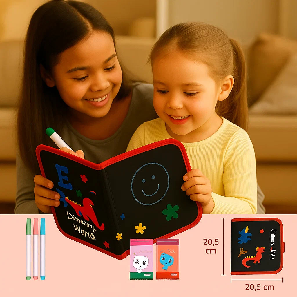 ¡Proporciona a tu hijo el lienzo perfecto para su imaginación con el libro de dibujo reutilizable para niños! Esta almohadilla de dibujo portátil y borrable convierte cada momento en una oportunidad para jugar, aprender y explorar creativamente, tanto en casa como de viaje.