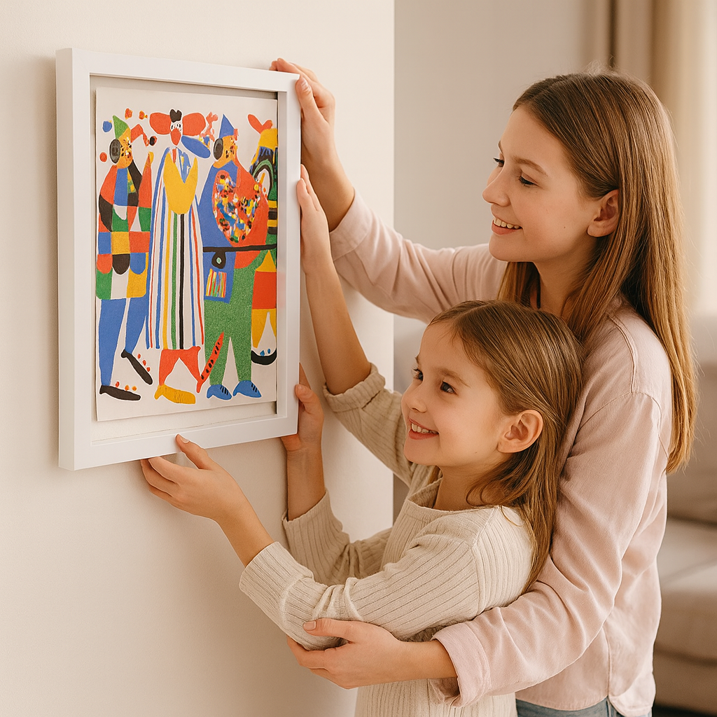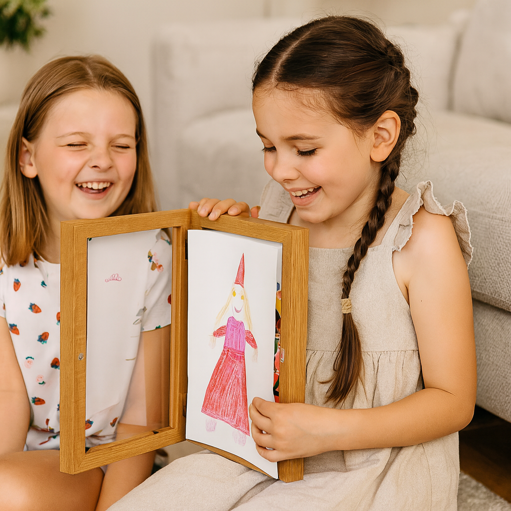 Con este marco, podrás organizar fácilmente el caos creativo. Todos los dibujos que hasta ahora estaban esparcidos por la habitación ahora encontrarán su lugar. También puedes exhibir un nuevo dibujo en cualquier momento sin perder las obras anteriores. Cada trabajo será apreciado, sin importar cuándo fue creado.
