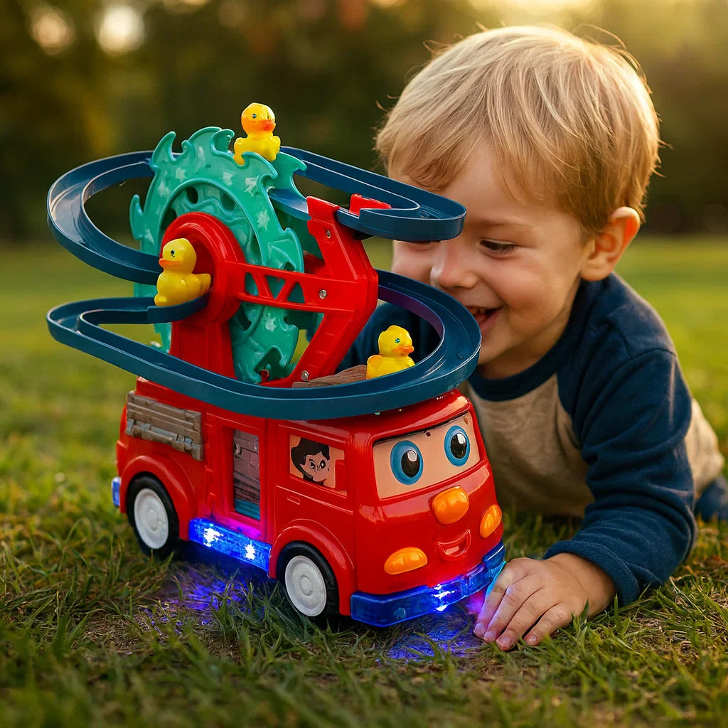 Este Camión de Bomberos con Patitos Deslizantes lleva la diversión a un nuevo nivel y garantiza una sonrisa en la cara de cada niño.