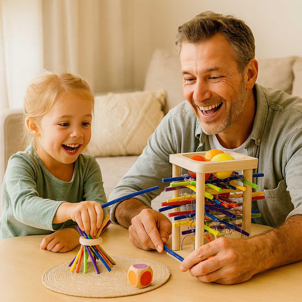 - 🧠 Entrena la concentración y la motricidad fina: La extracción precisa de los palitos refuerza la paciencia, la coordinación mano-ojo y el control de movimientos.