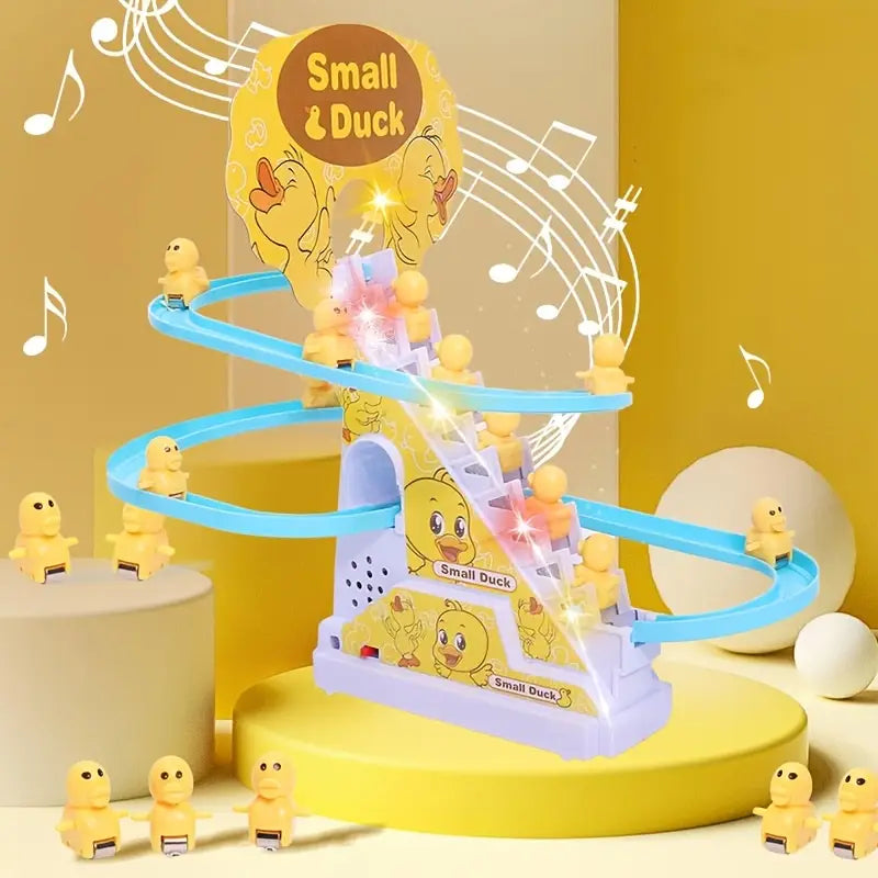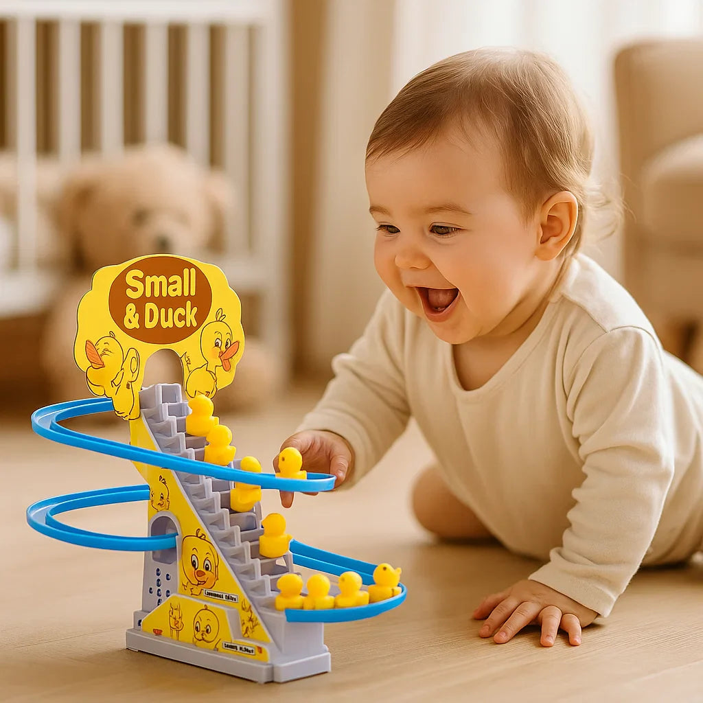 - 🐥 Diversión interactiva en movimiento: Los pequeños patitos suben automáticamente a la pista y se deslizan con música – ¡una y otra vez!