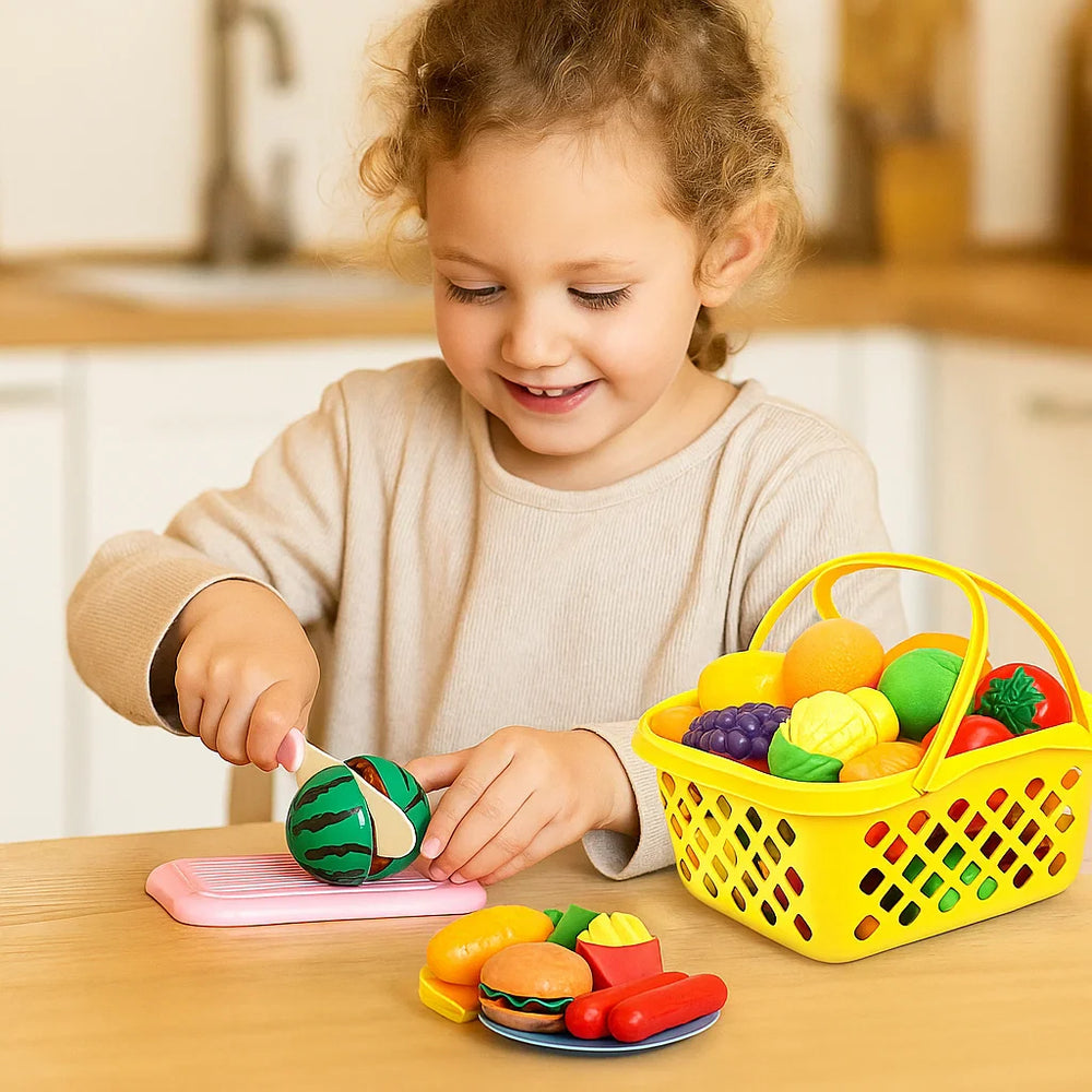Juego de corte de frutas | Juguete educativo para niños con cesta y verduras realistas para jugar a los roles